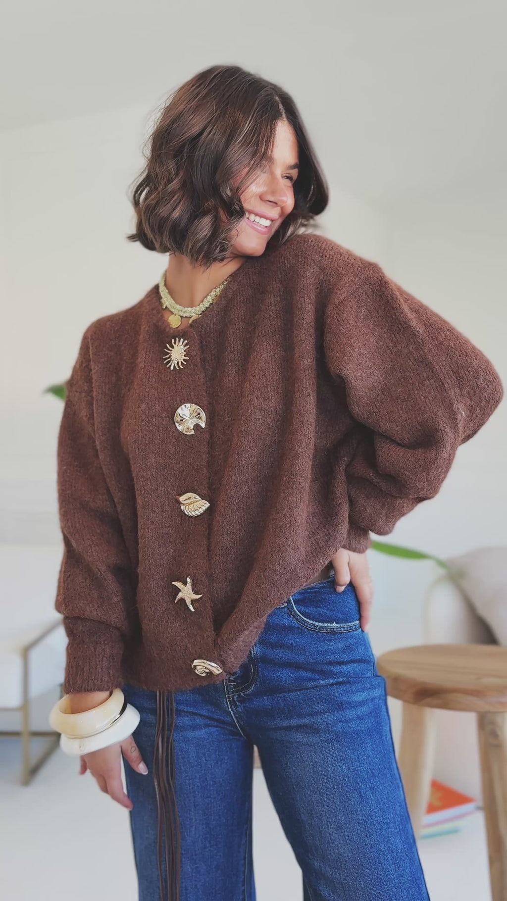 Gilet BROOKE marron avec ses bijoux