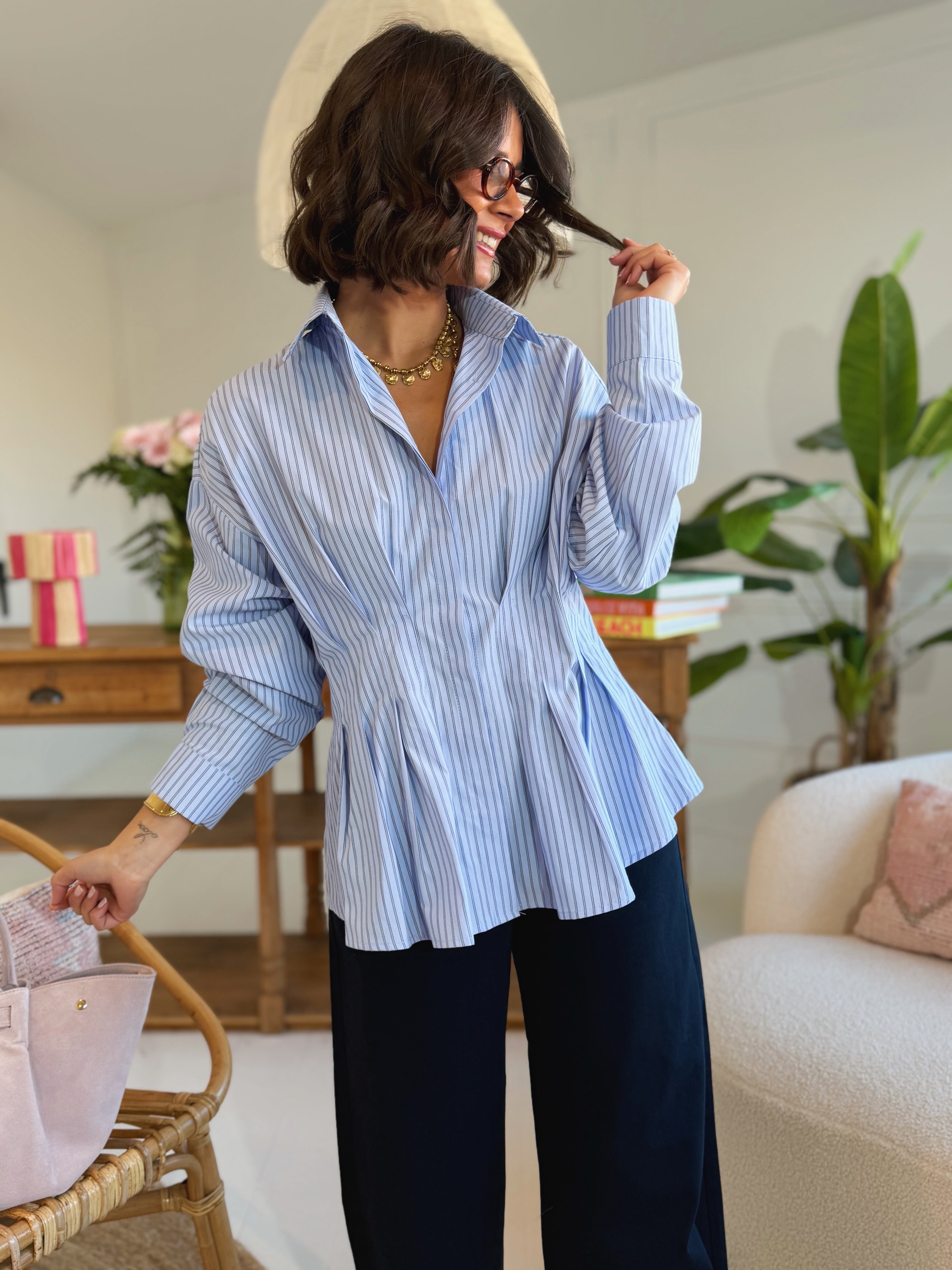 Chemise rayée cintrée & plissée