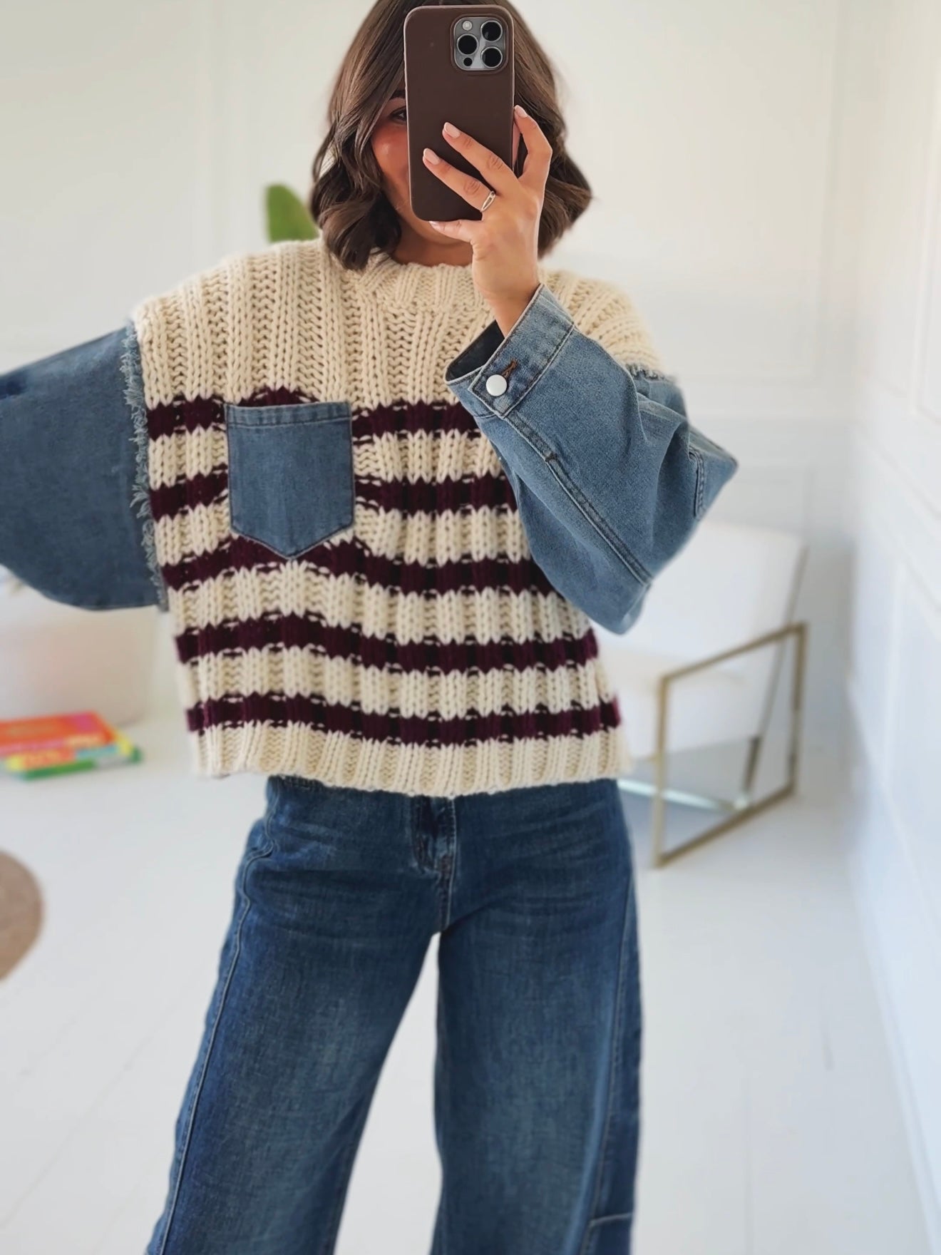 Pull OXFORD rayé avec ses manches en jean