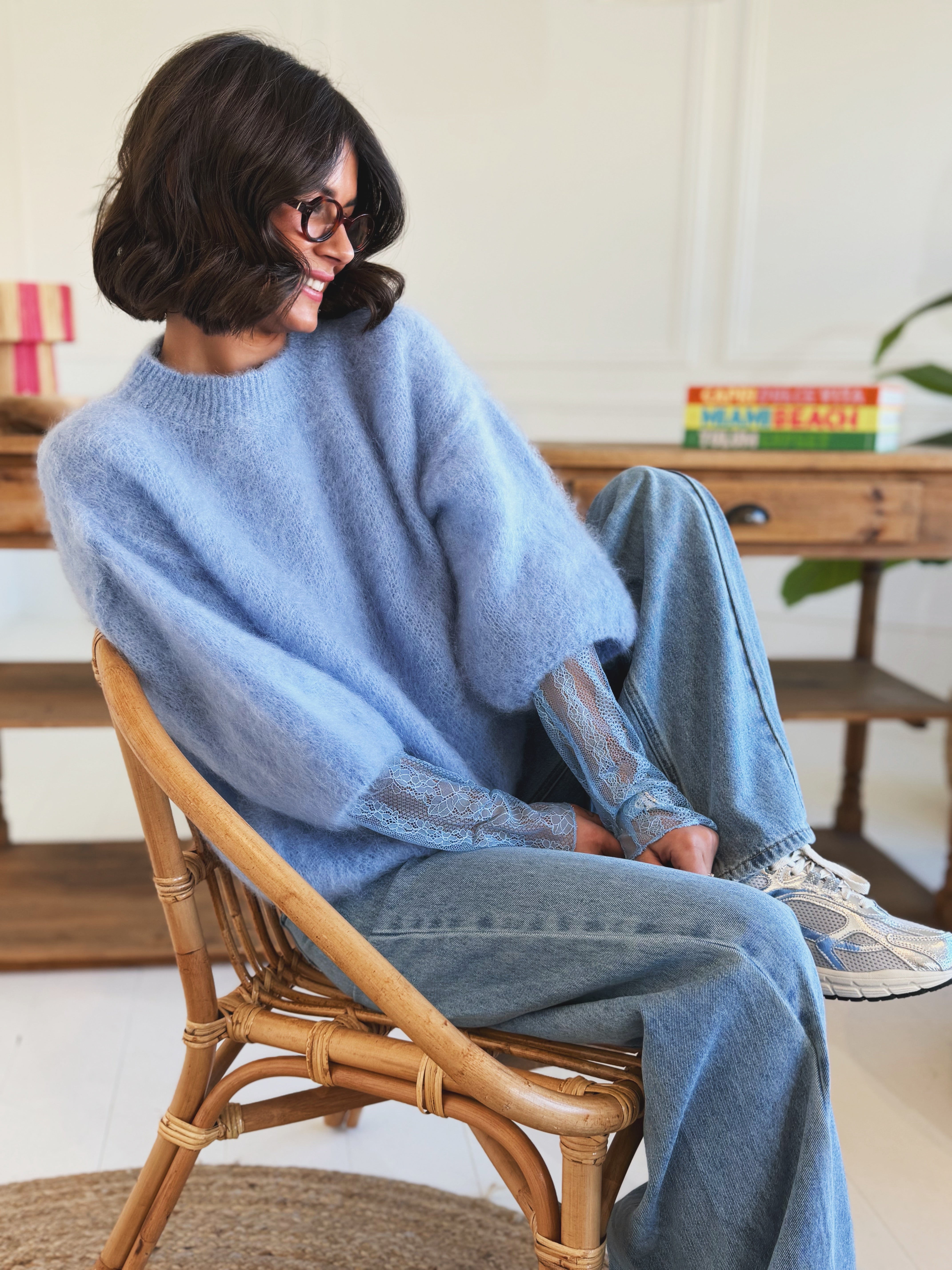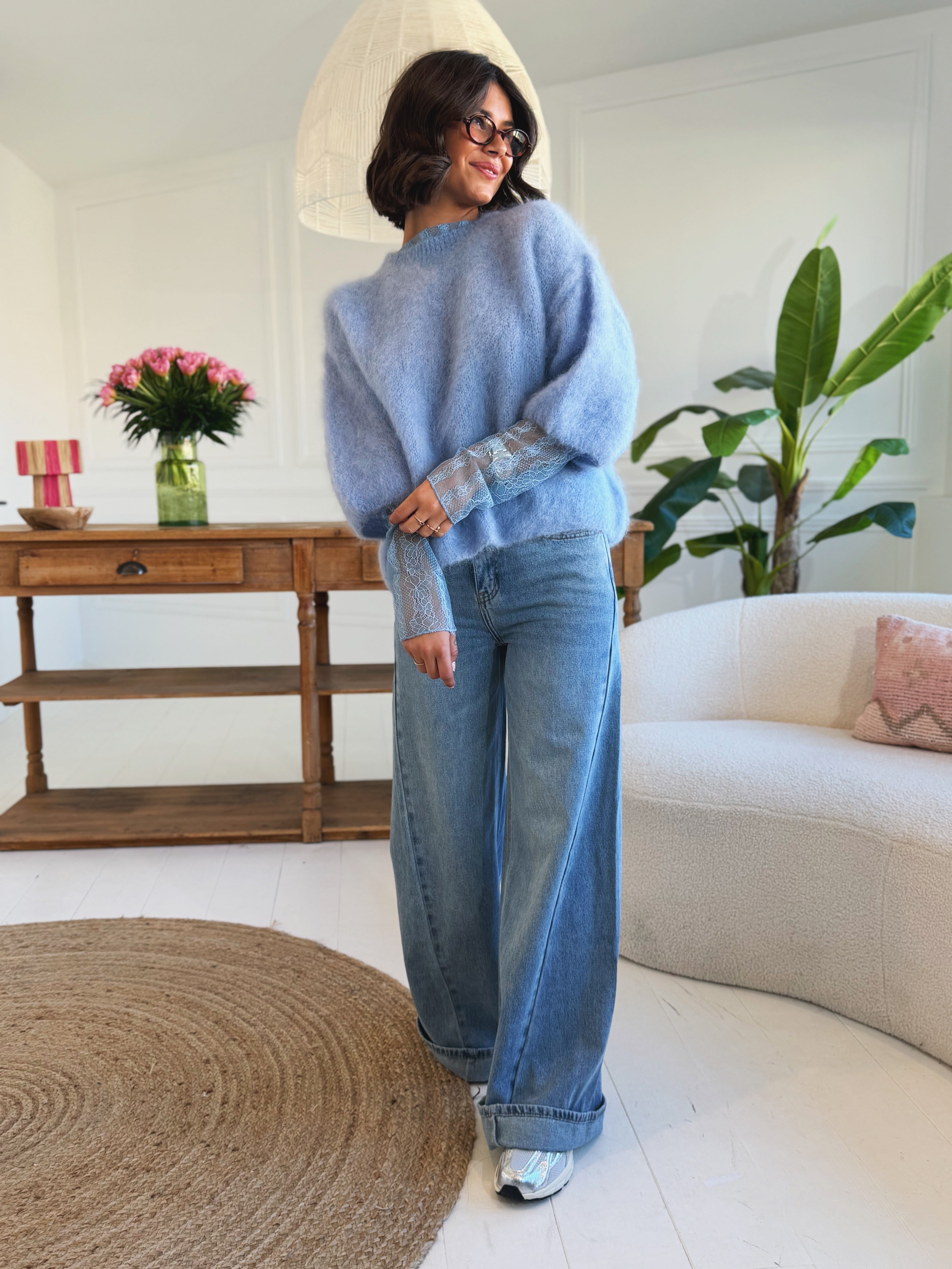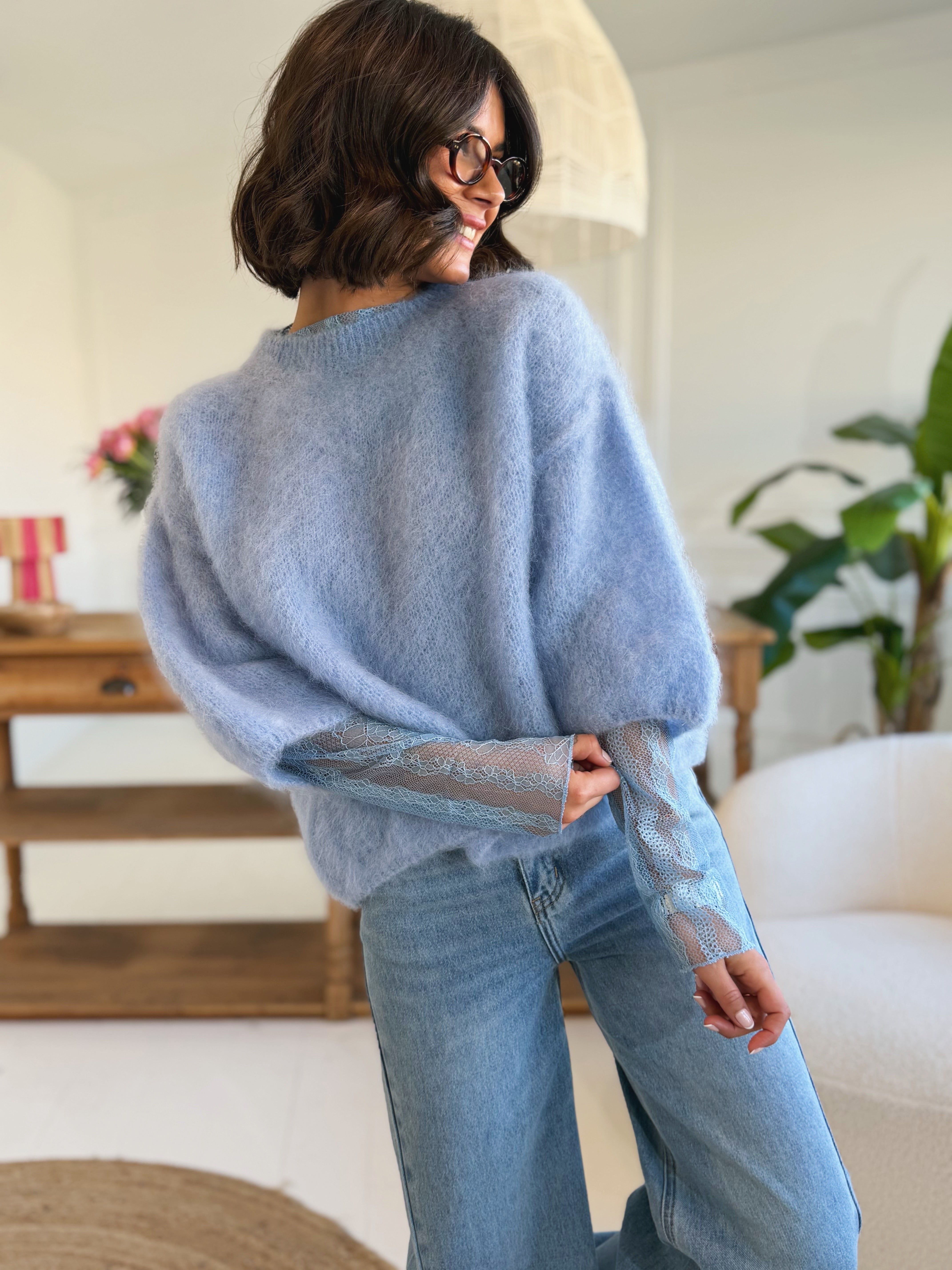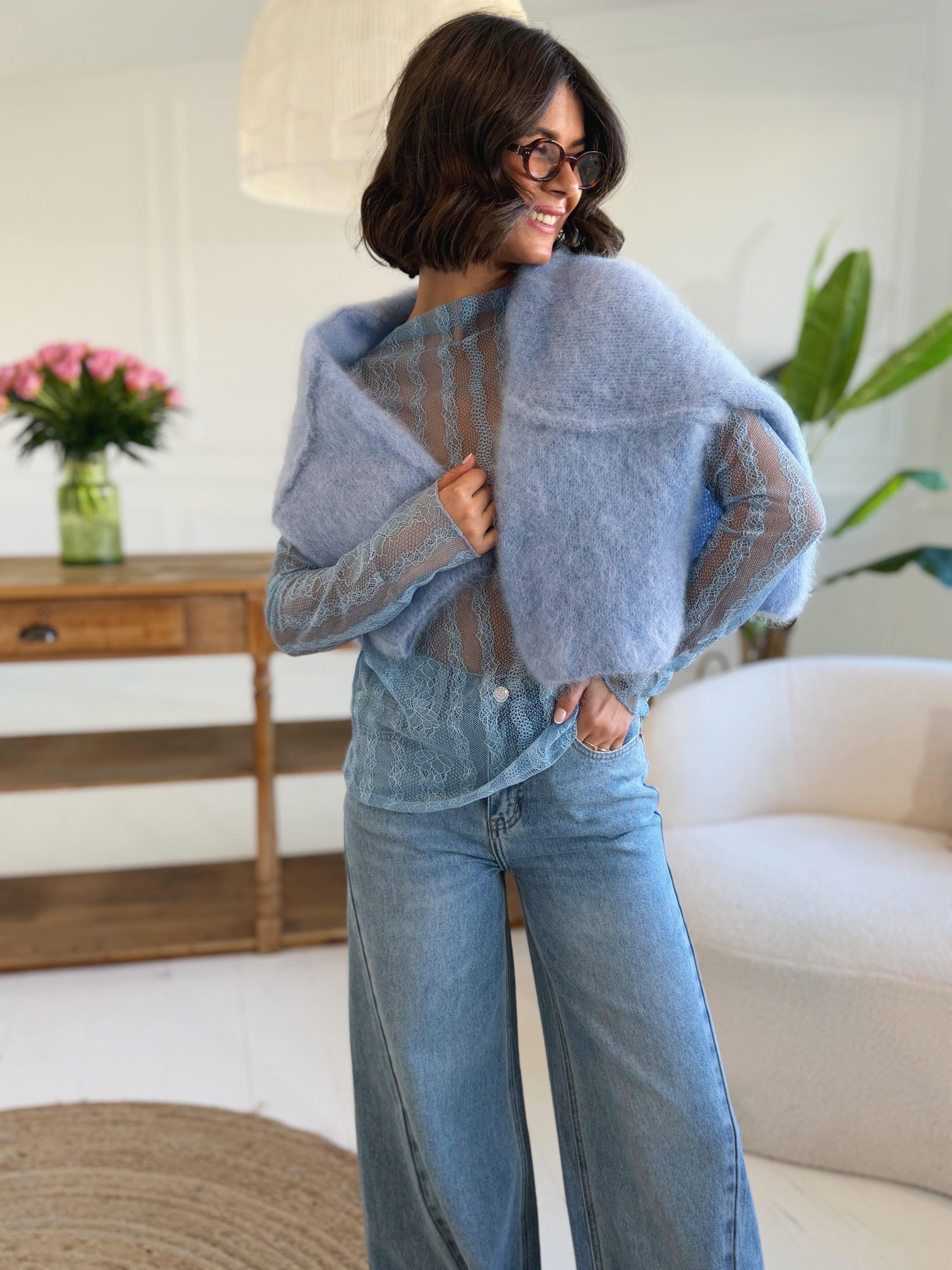 Top DENTELLE bleu ciel
